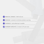 2. Scar Heal Kit contains Silicone Scar Gel 🌞, Silicone Sheeting 🌜 & Hypoallergenic Medical Tape 🩹 to help keep the sheeting in place.