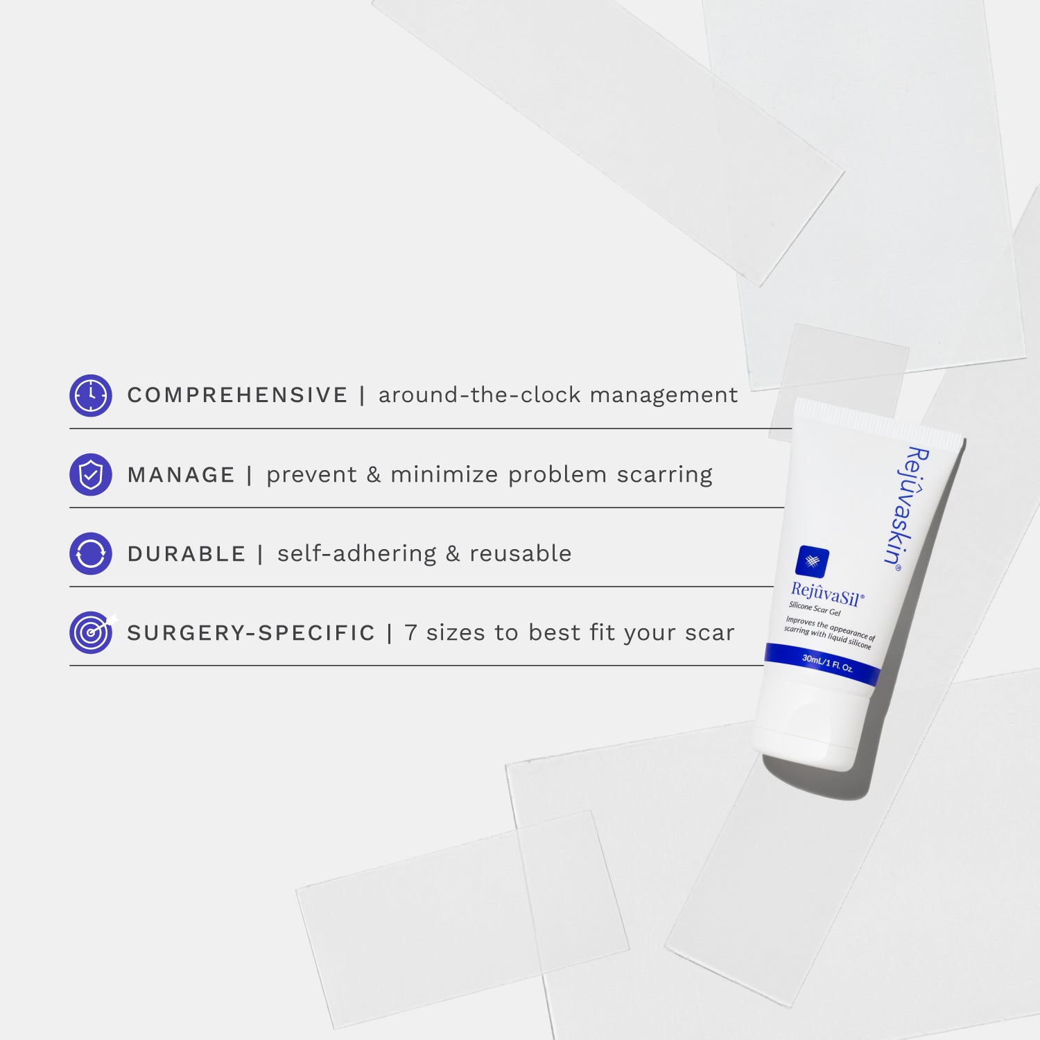 Clinically proven silicone technology provides 24/7 scar healing. Trusted by doctors for post-surgical recovery, injury scars, and lasting results you can see.