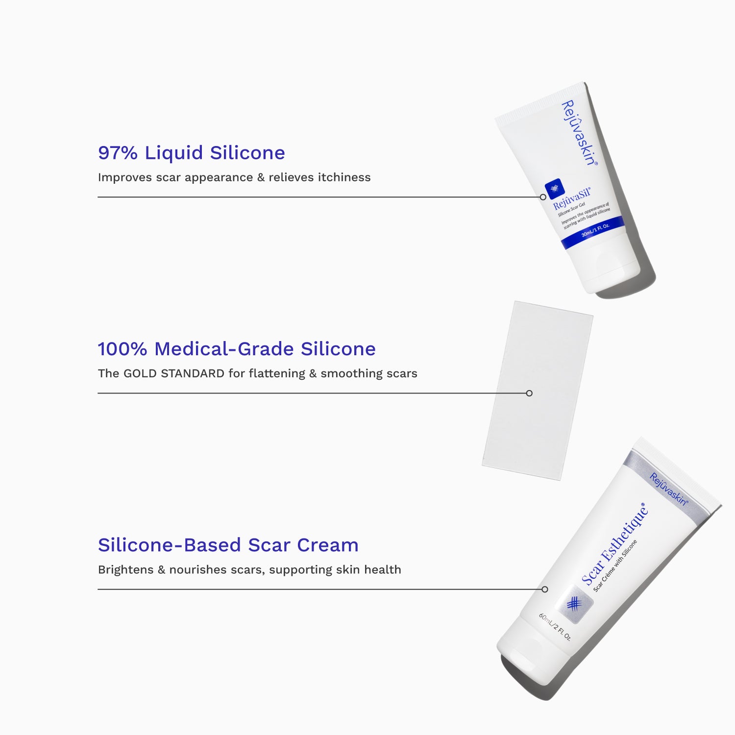 Medical-grade silicone gel creates an optimal healing environment by hydrating the scar tissue, regulating collagen production, and protecting the area. Clinical studies show silicone is the gold standard for scar management, helping to flatten, soften, and fade scars when used consistently for 8-12 weeks.