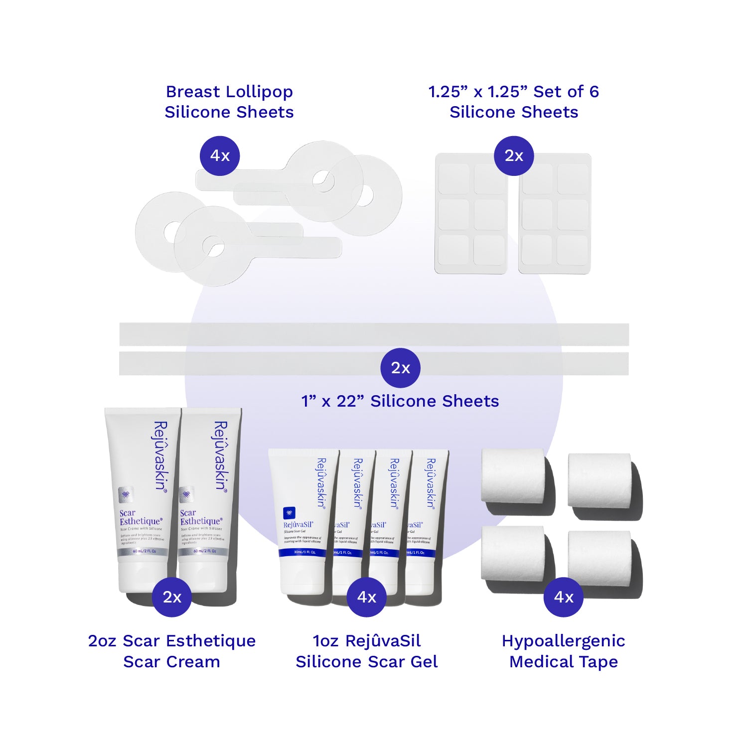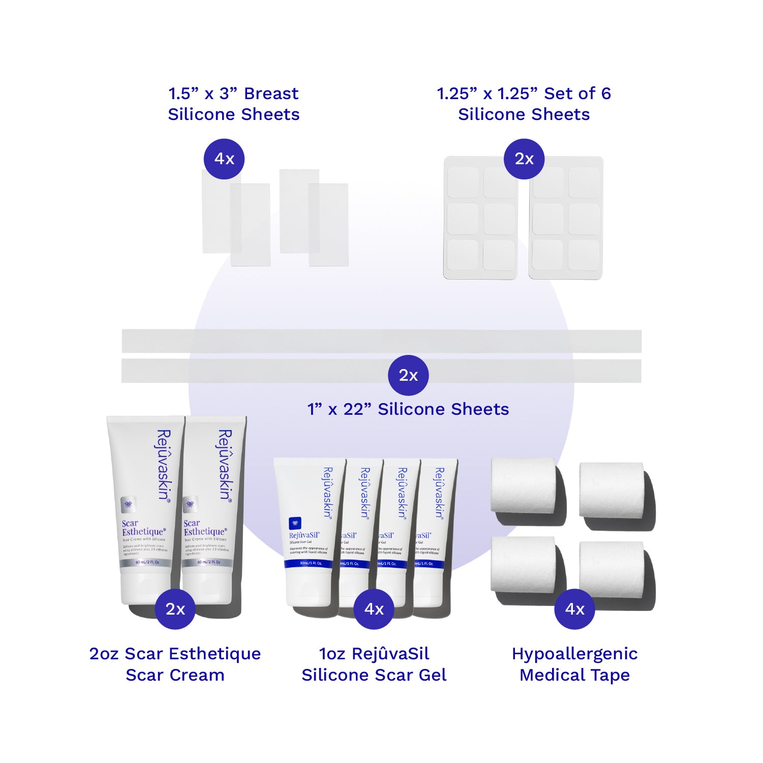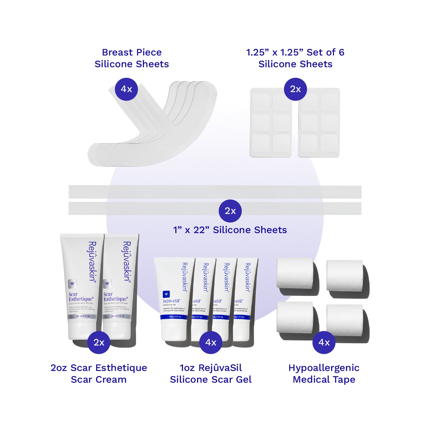 1. 2 x Breast Scar Heal Kits — Customizable shapes for breast augmentation, lift, or reduction. Includes silicone sheets + scar gel.