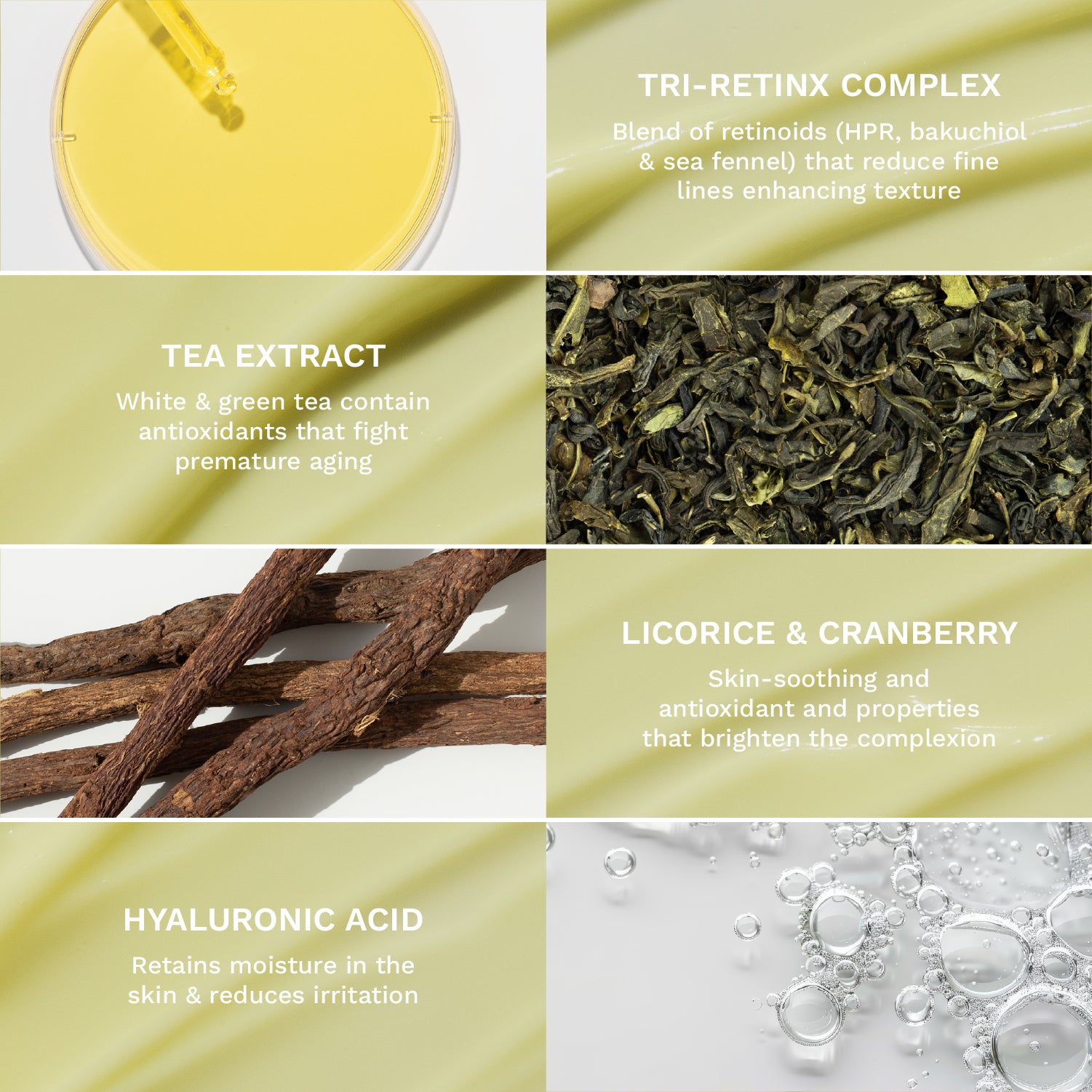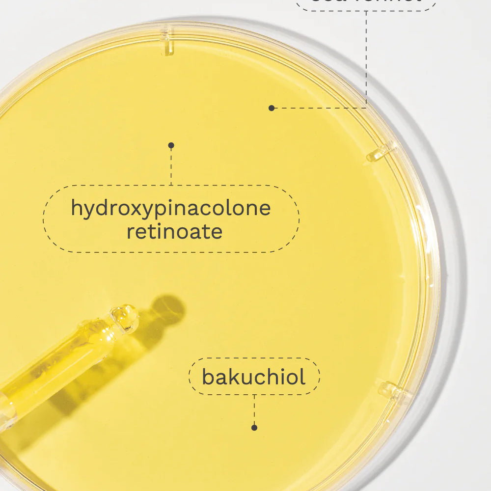 Meet our exclusive blend of retinoids (HPR, bakuchiol, & sea fennel) combined these help reduce fine lines and enhance skin texture.