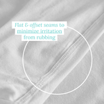 No Itchy Seams thanks to our offset & flat-seamed design, thus minimizing friction, a common trigger for irritation and discomfort in sensitive skin
